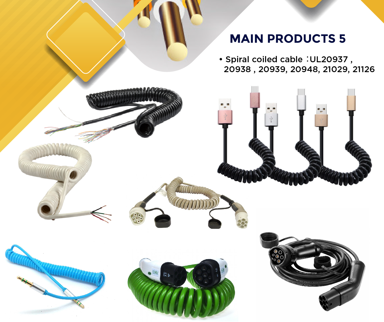 - Spiral Coiled Cable: UL20937, 20938, 20939, 20948, 21029, 21126